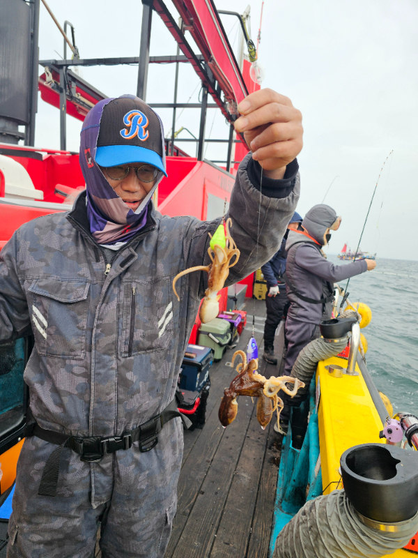 새벽일찍 출항해서 껌껌한 바다에서 주꾸미들 시작은 나쁘지 않게 나옵니다.